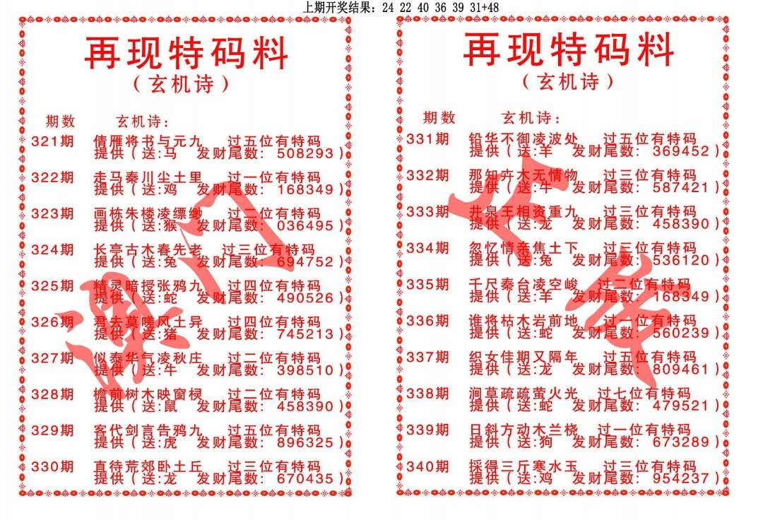 再现特码料